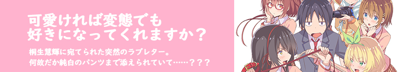 | STAFF | 原作:花間 燈 (MF文庫J『可愛ければ変態でも好きになってくれますか?』/KADOKAWA刊) 原作イラスト:sune 監督:いまざきいつき シリーズ構成:山下憲一 キャラクターデザイン・総作画監督:伊藤陽祐 プロップデザイン:半田大貴 パンツデザイン:清水美穂 美術監督:Choi Seonguk 色彩設計:近藤直登 撮影監督・編集:堀川和人 音響監督:えびなやすのり 音響効果:川田清貴 音楽:酒井陽一 音楽制作:ランティス アニメーション制作協力:アニメーションスタジオ・セブン 制作:ギークトイズ |